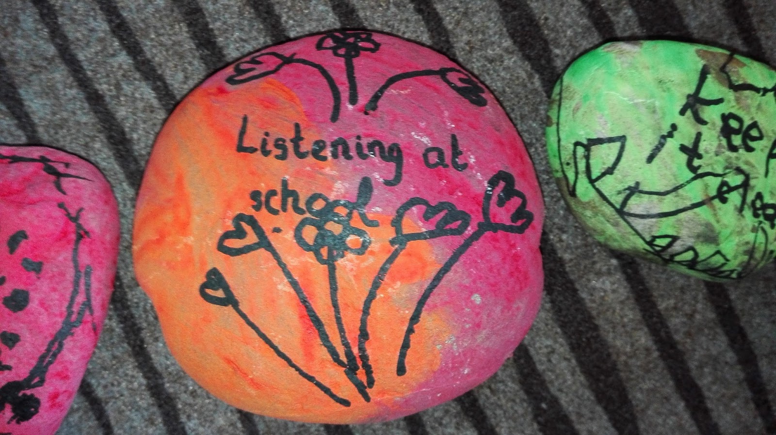 Today was International World Peace Day. So, to be part of it, we brought in stones which we painted today.